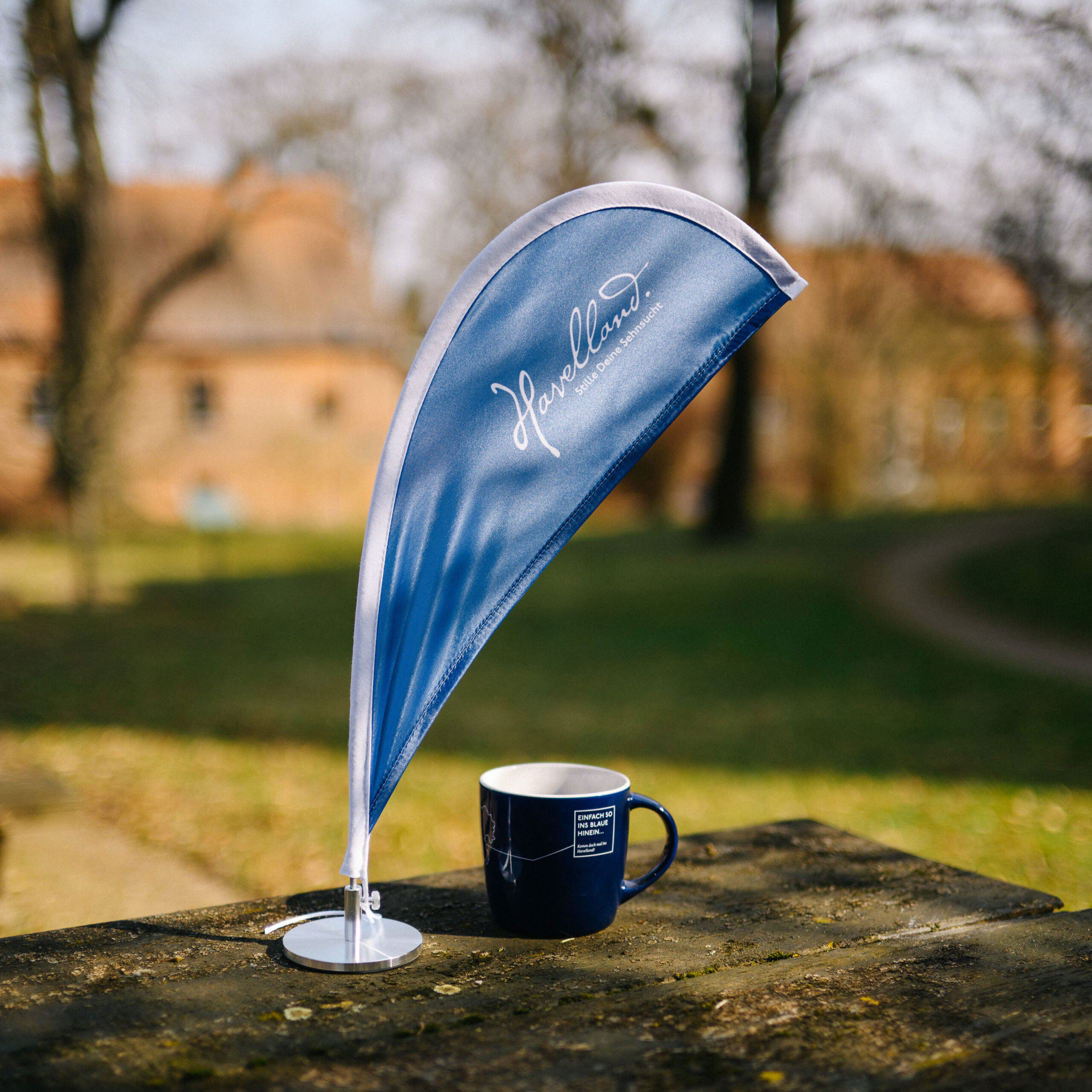 Die Tischfahne im Havelland-Design ist ein wirkungsvolles Kommunikationsmittel. Sie verbindet dezentes Design mit klarer regionaler Identität.